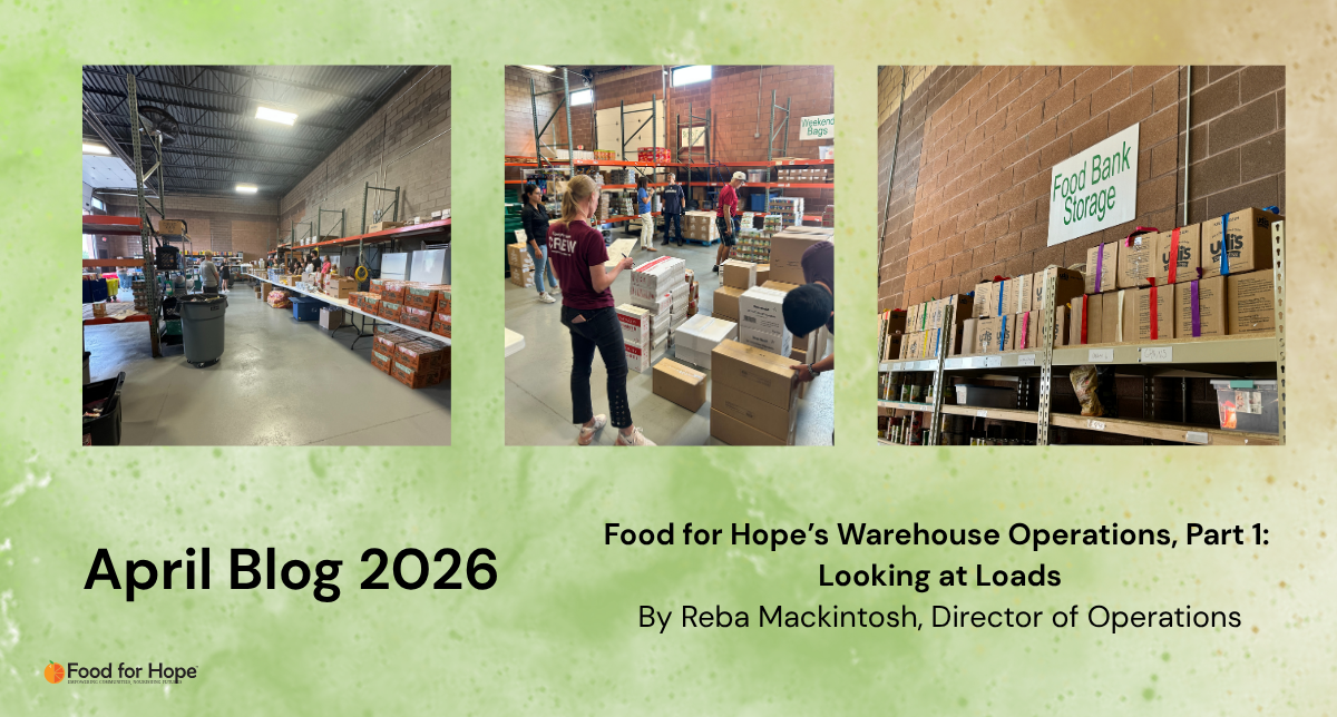 I asked Kelly a few questions related to this side of our operations, and I’m excited to share her insights with you below. I hope this gives you a glimpse into and appreciation of the complicated process she takes on for Food for Hope every week.